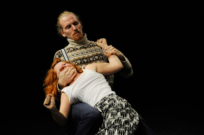 Andre Scioblowski, Alica Weirauch in: „Und keiner will der Kapitalist sein ...“ – Zement. Probe Revolution; Regie: Markus Schlappig, Theater Arbeit Duisburg 2008, Ringlokschuppen Mülheim a.d.Ruhr