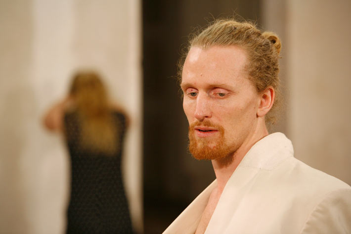 André Scioblowski in "Louise Millerin", Regie: Judith von Radetzky, Ballhaus Ost, Berlin 2010 - PROBENFOTO