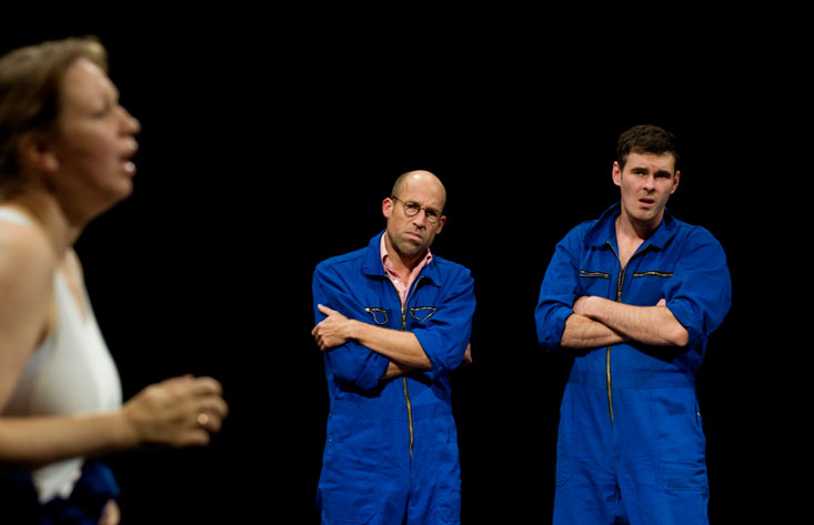 Anke Schüler, Sven Schöcker, Andreas Hilscher in: „Und keiner will der Kapitalist sein ..." - Der ewige Maurer, Regie: Markus Schlappig, Theater Arbeit Duisburg 2009