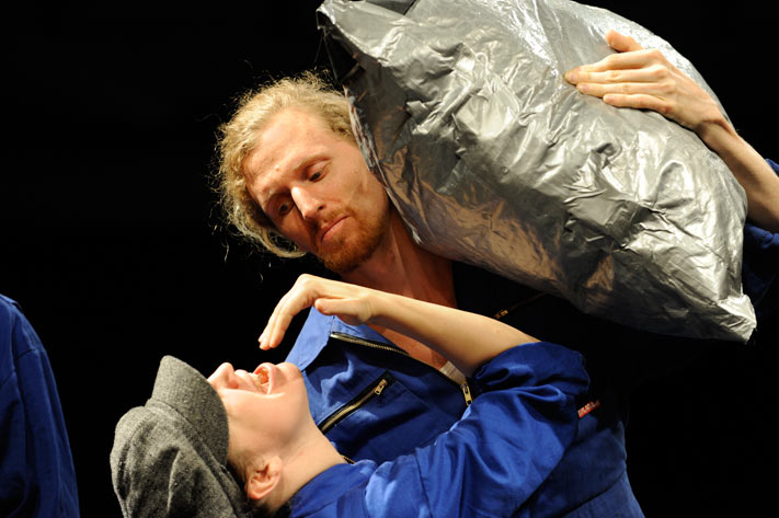 Anke Schüler, André Scioblowski in: „Und keiner will der Kapitalist sein ..." - Der ewige Maurer, Regie: Markus Schlappig, Theater Arbeit Duisburg 2009