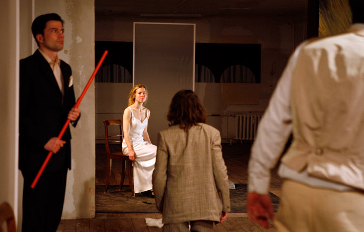 Lars Jokubeit, Theresa Sophie Albert, Felix Würgler in: "Louise Millerin", Regie: Judith von Radetzky, Ballhaus Ost, Berlin 2010