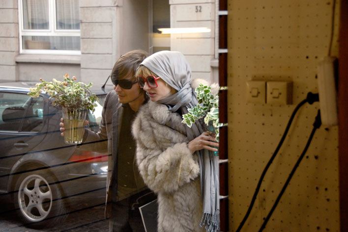 Oleg Zhukov, Ellen Schlootz in: "Our Town. Ruhrort", Regie: Martin Kloepfer, Theater Arbeit Duisburg, Ruhrort, 2008