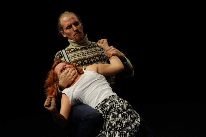 Andre Scioblowski, Alica Weirauch in: „Und keiner will der Kapitalist sein ...“ – Zement. Probe Revolution; Regie: Markus Schlappig, Theater Arbeit Duisburg 2008, Ringlokschuppen Mülheim a.d.Ruhr